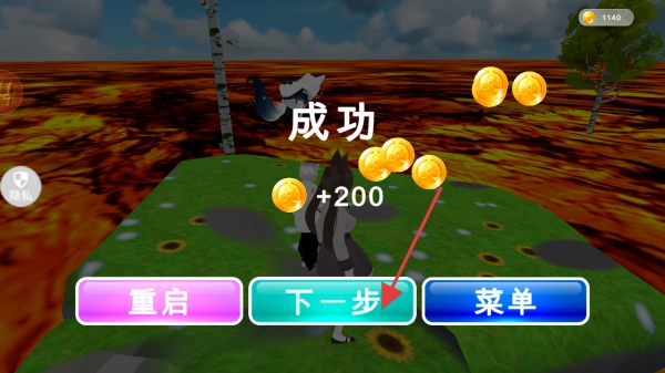 3、成功抵达终点后,点击“下一步”按钮,即可继续推进游戏任务,以此获取游戏得分与奖励,积累游戏资源,进而提升角色能力。