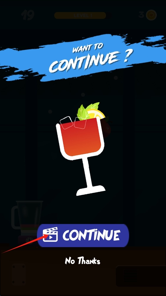 3、若游戏失败,可根据提示选择是否继续游戏,继续游戏可观看广告获得机会,结束游戏则重新开始。