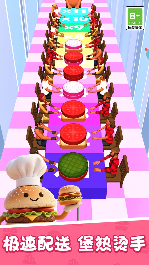 《吃汉堡变胖》是一款欢乐满满的餐厅模拟游戏,你将化身时尚有型的服务生,用独家绝活为顾客送上完美汉堡。从食材搭配到火候把控,每个制作环节都考验你的专注力——要知道,放错一种配料就可能收到差评!在游戏里灵活躲避突然出现的障碍,保持餐盘平衡才能让汉堡完好无损。路上闪闪发亮的金币可别错过,攒够数量就能解锁超酷的个性装扮,让你成为整条美食街最亮眼的存在!准备好迎接这场速度与美味的双重挑战了吗?