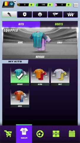 3、若想更换球队服装和队徽设计,请点击下方的gear按钮。