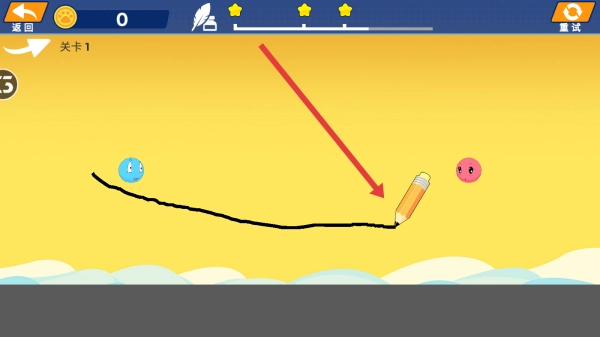 2、请用铅笔绘制黑色线条,以此引导蓝球沿着轨迹移动;操作时需精准把控,让蓝球尽量靠近粉色小球,这样就能完成通关。