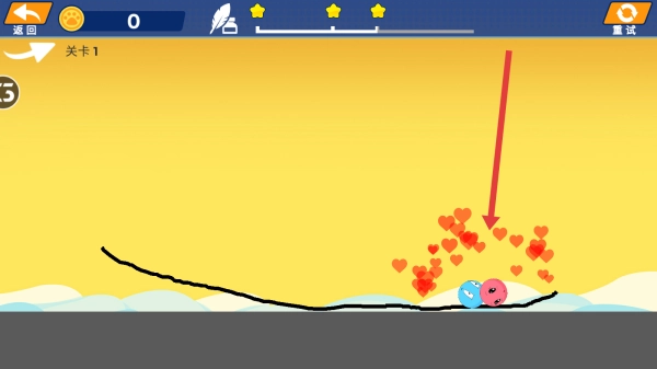 3、当篮球成功到达粉色目标位置时会触发爱心特效,要是失败了可以点击重试重新开始,继续挑战该关卡。