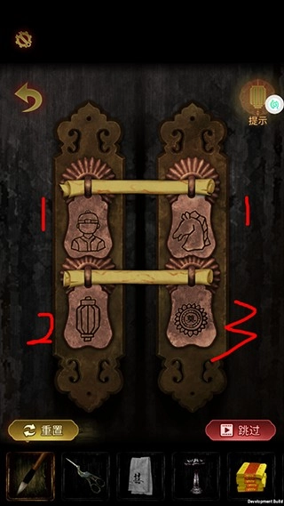 6.按照屏风上的提示柜子右上角的机关,就能得到无字铜币。