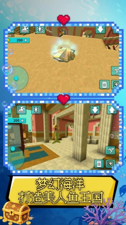 1、开放像素沙盒世界,提供无限创意空间,玩家可自由打造个性化建筑,任何建筑设施都能按照自己的喜好想法进行建造。