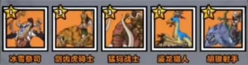 石器时代可获得的橙色兵种有:冰雪祭司、剑齿虎骑士、猛犸战士、盗龙猎人;