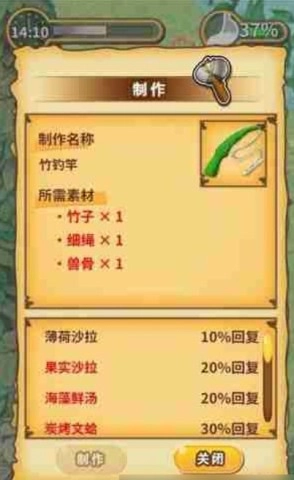 利用简单的合成系统,玩家可以制作各种生存道具,比如鱼竿、斧头、捕兽陷阱等,并逐步升级,提升效率。