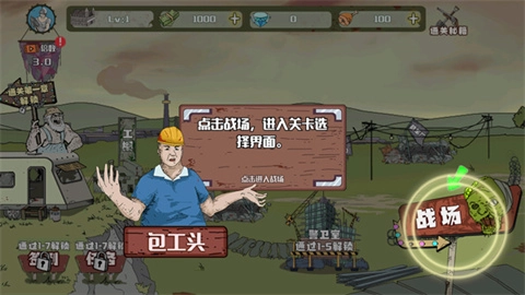 1、打开建筑工也疯狂游戏,根据页面上的文字点击战场进入,开始游戏。