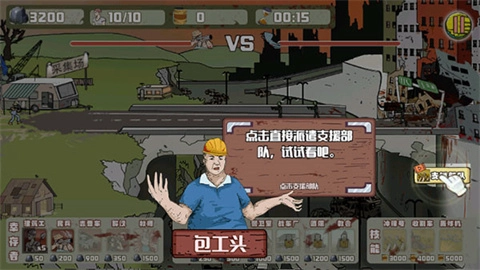 4、僵尸数量大,可以点击支援部队进行协助。
