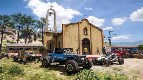 沉浸式场景设计,游戏采用3D建模技术,细致呈现了林地、沙漠、岩石公园等多种场景的地形细节。扬尘与颠簸特效进一步增强了临场感,让玩家仿佛置身于真实的越野赛道之中。