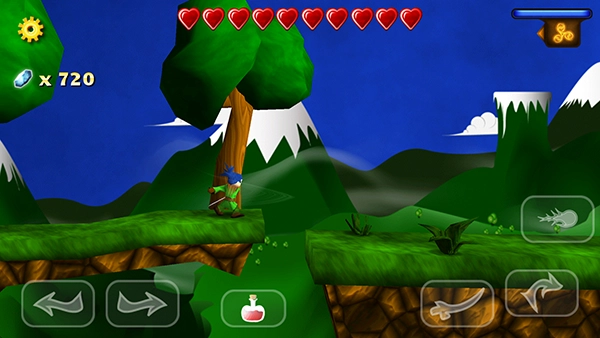 像上图所展示的那样,界面的最右侧就是跳跃键。在进行跳跃的过程中,要是再次点击跳跃键,就能完成二段跳。