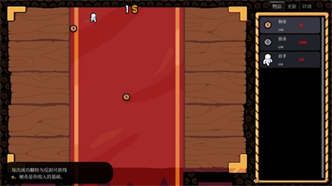 2、靠抛硬币盈利。购入更大型、更优质的硬币,解锁各类升级功能,还能雇佣小助手实现流程自动化,让它们帮你包揽所有抛硬币的繁琐事务。