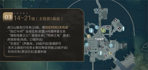 3、联觉等级14-21级,主线第四幕完结、第五、六幕在21级开启,中间还有20级突破索拉等级一道门槛,战线开始拉长、这个区间开始有一些自由时间去探索,有几个经验较多的点可以供漂泊者优先选择拿经验。