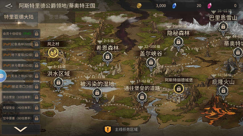 2、接下来前期的核心是升级,想提升等级的话可以去做主线任务(系统会自动寻路,很方便),这一阶段主要是帮助玩家熟悉游戏玩法,正常做主线大概一天就能达到70级;要是不想慢慢做任务,也可以直接去会员专属地图挂机升级来跳过这个过程。