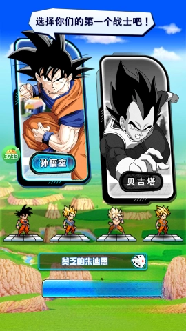2、选择一个心仪的战士,如孙悟空或贝吉塔,开始冒险之旅;
