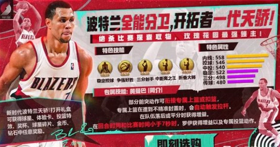 优点:不错的进攻上限,较强的翻盘能力,以及点券里最丰富的专属动作。得分以专属内切快扣稳2为主,落后时可考虑后撤3分或者绝境干拔3分(满专属可S评分),传奇及以下分段一局偷一两个三分还是可以的。打法丰富,可玩性拉满。