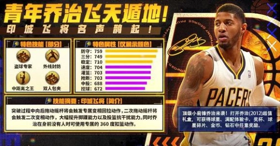 优点:10+7防守送一手接锅顶投。乔治我觉得强度还是可以的,不遇到船乔,霍勒迪这样的应该都还能打一打。优秀的脚踝能力,恐怖的抗干扰能力,乔治中投还是很稳的,基本s+。配个篮板强的蓝领,传奇以下还是能叱咤的。