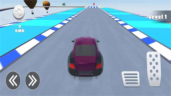 3、右侧的控制按钮用于操控车辆前进和后退,上方显示的是玩家当前的速度以及所处关卡;若闯关失败,玩家可点击复活按钮重新尝试。