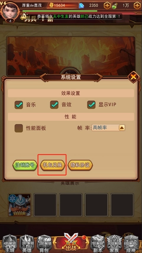 2、点击玩家详情,在系统设置里选择礼包兑换即可;