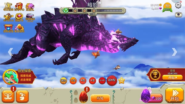 2、玩家一开始只有一条小龙,需要在天空中猎食来让它成长。游戏里的宠物得自己找蛋才能解锁,而龙则是等当前这条的生长度满了,用金币购买就能解锁下一条。