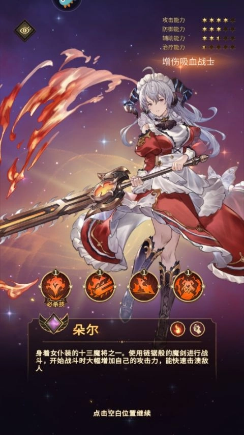 她是十三魔将中的一员,常以女仆装的形象示人。战斗时,她挥舞着链锯形态的魔剑,开战瞬间便能大幅提升自身攻击力,凭借迅猛的攻势快速击溃敌人。