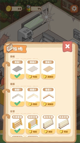 3、花费金币解锁更多的设施,经营你的店铺吧。