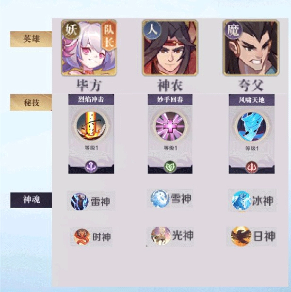 组合英雄:毕方(队长)+神农+夸父