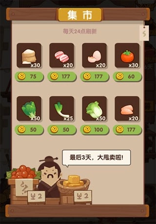 在《爆炒江湖》里,初始阶段集市是未解锁的状态,得跟着主线任务一步步推进才能解锁它。随着客栈的客人渐渐增多、生意愈发红火,你会发现有些食材得去集市采购才行。这时候,你就能用客栈经营赚来的金币,在集市上买下需要的食材,既能满足客人们的需求,还能拿到更丰厚的奖励呢!