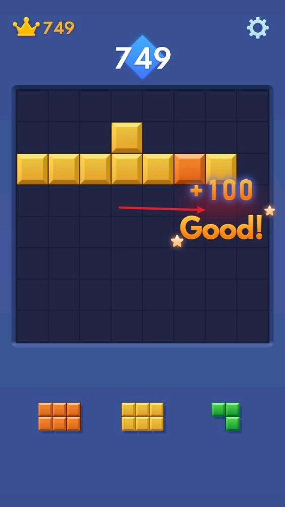 1、游戏下方会给出三个随机方块,你只需把它们放到合适的位置就行。