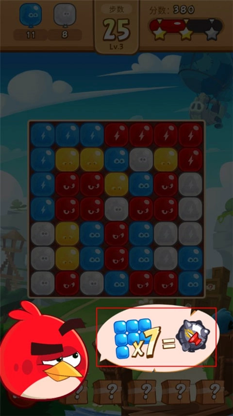 1、启动愤怒的小鸟爆破游戏,当出现两个或两个以上颜色相同的气球时,就能对它们进行消除操作。