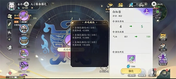 3、装备:金丹装备分解可以得强化石,强化逐渐把共鸣做出来