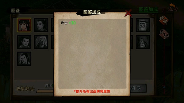 解锁更多的武侠图鉴和武功图鉴,可以获得的属性加成也越高。