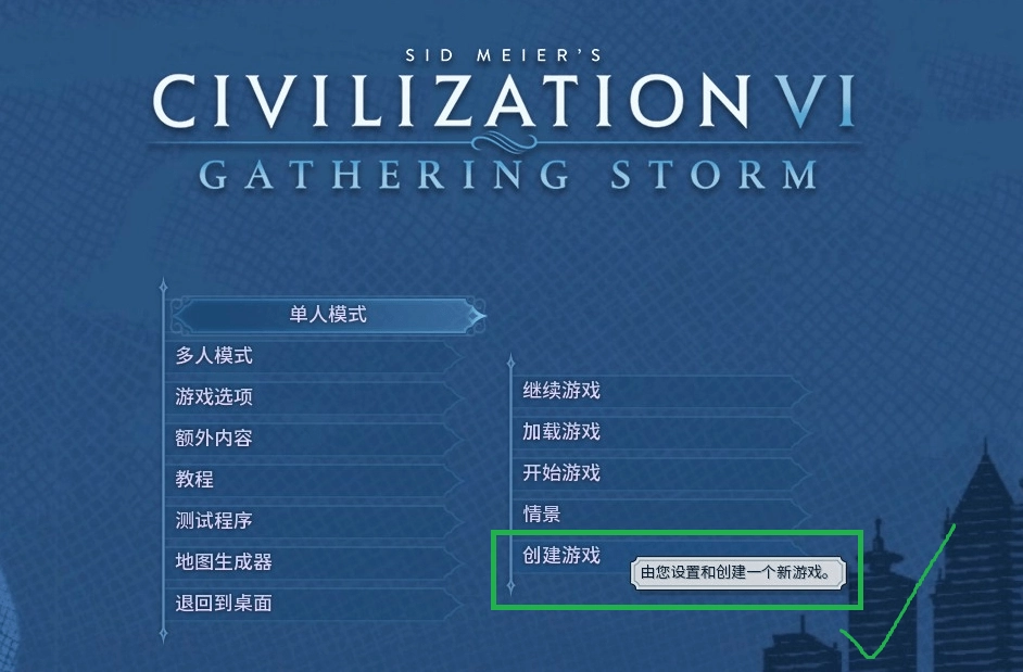 总之,让我们通过点击【单机模式 - 创建游戏 - 高级设置】来创建一局游戏: