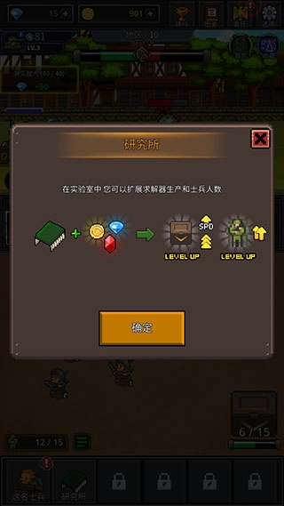2.成长士兵通过不同的兵种搭配来打造部队,同一兵种可以组合,等级越高,能力越强,需要不断提高部队的防御能力。