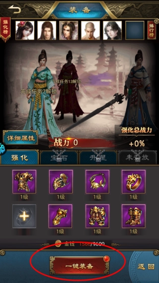 当背包里存在比当前穿戴装备等级更高的装备,或者有尚未使用过的装备时,点击“一键装备”按钮即可完成换装操作。