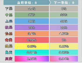 品级一共分为8种不同品质的装备,通过升级神鼎来提高高品质的装备得到率,以下由低到高依次排列: