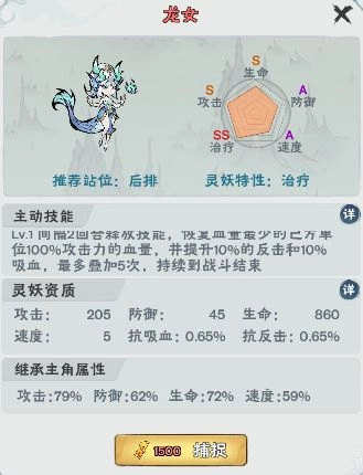 我们可以点击查看灵妖的详细信息,包括属性、技能、推荐站位等内容。通常来说,拥有反击、闪避特性,或是五维属性里防御评分较高的灵妖,比较适合安排在前排承担伤害;而具备暴击、治疗特性的灵妖,则更适合放在后排,以便获得更多输出或治疗的机会。不过凡事并非绝对,各位道友也能依据队伍成员的实际生存能力来灵活调整站位。