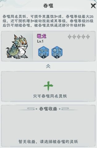 此外也可以多捕捉几只同种妖灵,然后进行同种吞噬,吞噬可以强化灵妖的基础属性和被动能力。假如道友想在前期以较低成本获得一位强大的助力,捕捉多只中低品阶的同种灵妖进行吞噬培养亦不失为一种选择