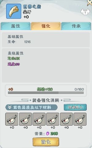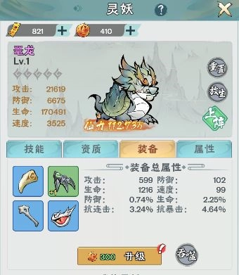 接下来,我们就能给新伙伴穿戴装备了,装备能为灵妖增加额外的基础属性,品阶高的装备还能带来高级属性加成。