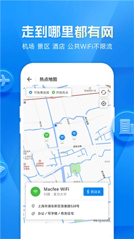 节省流量,随时随地免费连接优质WiFi,地铁,高铁,飞机场一键畅通链接wifi,再也不用担心月底流量不够用啦!