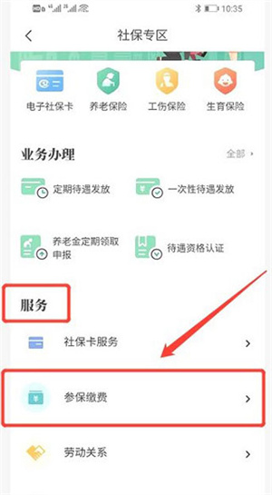 3、回到首页,将页面向下滑动,在页面下方找到【主题服务专区】,点击打开【个人】,接着再打开【社会保障服务】