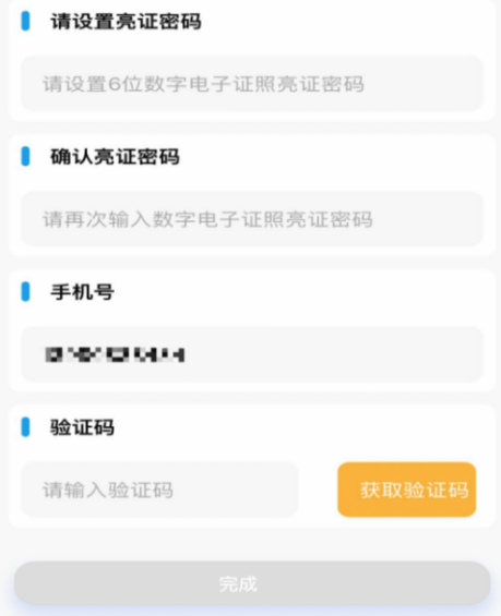 (9)若申请人符合线上办理条件,申请成功后即可进行亮证操作,只需点击二维码,并输入亮证密码,就能完成亮证。