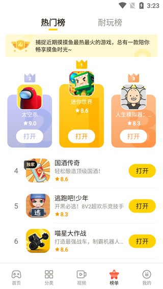 4、通过榜单栏,你能看到热门榜和耐玩榜两个游戏榜单;