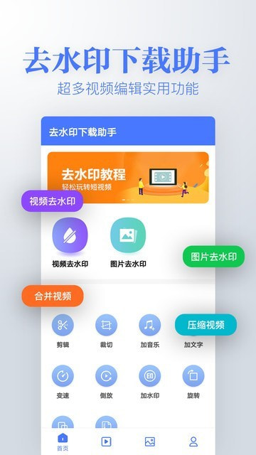 去水印下载编辑是功能无比强大的视频编辑工具。去水印视频编辑软件的主要功能是能够去掉各种视频上的水印,除了这个去水印视频编辑app还有众多实用功能等你来体验!