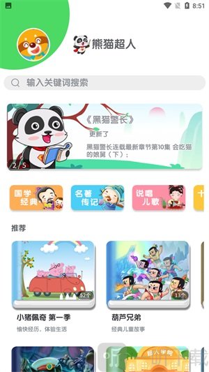 熊猫超人是一款学习教育软件,专为儿童设计。软件中为小朋友准备了海量有声读物,寓言故事、童话故事、中国传统故事等一应俱全。家长能够给孩子播放点读,助力孩子学到更多有趣知识。有需要的不妨试试这款软件。