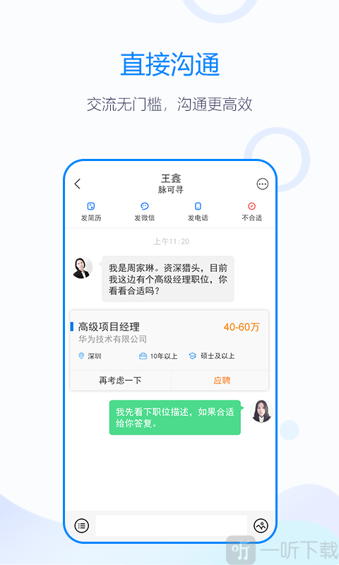 1. 直接与猎头以及百万专业人士进行沟通,沟通顺畅无阻碍,效率更高。