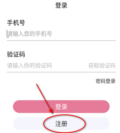 2、在下方能够看到【注册】按钮,点击该按钮。
