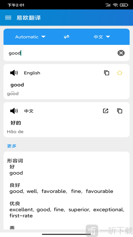 易欧翻译的页面设计极为简约,用户能一眼看清所有功能,在线即可翻译。无论是学习、工作,还是外出旅游等场景,它都能派上用场,助你迅速将内容翻译成任意语言,且翻译结果精准度高,大家可放心使用,是一款相当出色的翻译软件。