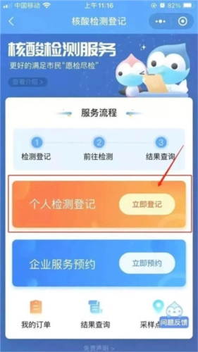 3、点击“个人核酸检测登记”;