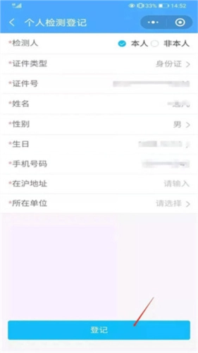 4、填写信息,点击“登记”;