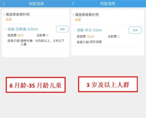 4、根据受种者的年龄自动分配适合预约的流感疫苗产品。